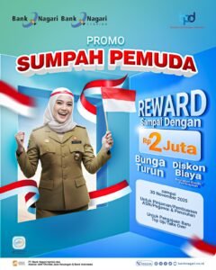 Selain itu, Bank Nagari juga meluncurkan Promo Sumpah Pemuda Spesial Reward bagi para ASN, pegawai, dan pensiunan yang mengajukan pinjaman atau pembiayaan baru, top up, maupun take over. Melalui program ini, nasabah berkesempatan mendapatkan reward hingga Rp2 juta, penurunan bunga, serta diskon biaya pencairan kredit/pembiayaan. Promo ini berlaku hingga 30 November 2025.